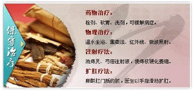 1、pph除痔术:利用环状痔疮缝合枪,把已脱出肛门的痔疮拉回原位,同时截断向痔疮提供血液的血管,令痔疮不再胀大,减低病人痛楚。手术时间大约20分钟。